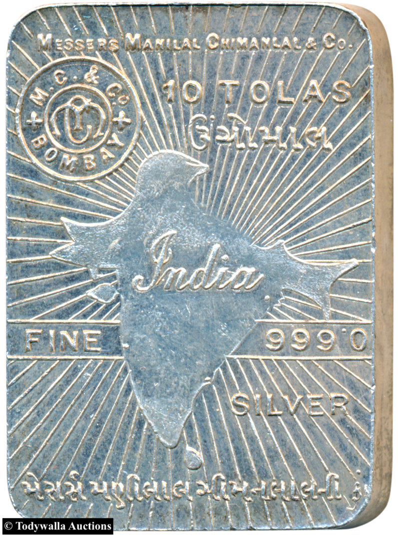 Here's a note from The United States National Museum: The Annual Report for the Year Ended June 30, 1963 showing the donation of a 5 Tola Manilal Chimanlal Silver piece made to the national collections.
