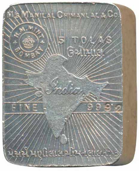 There are a few similarities between bars produced my Manilal Chimanlal and Devkaran Nanjee. His Majesty's mint (H.M. Mint) made bars for both these companies indicating that both these companies produced bars during British-India rule. Both these companies were based out of Mumbai and both the companies have logos in the same style: