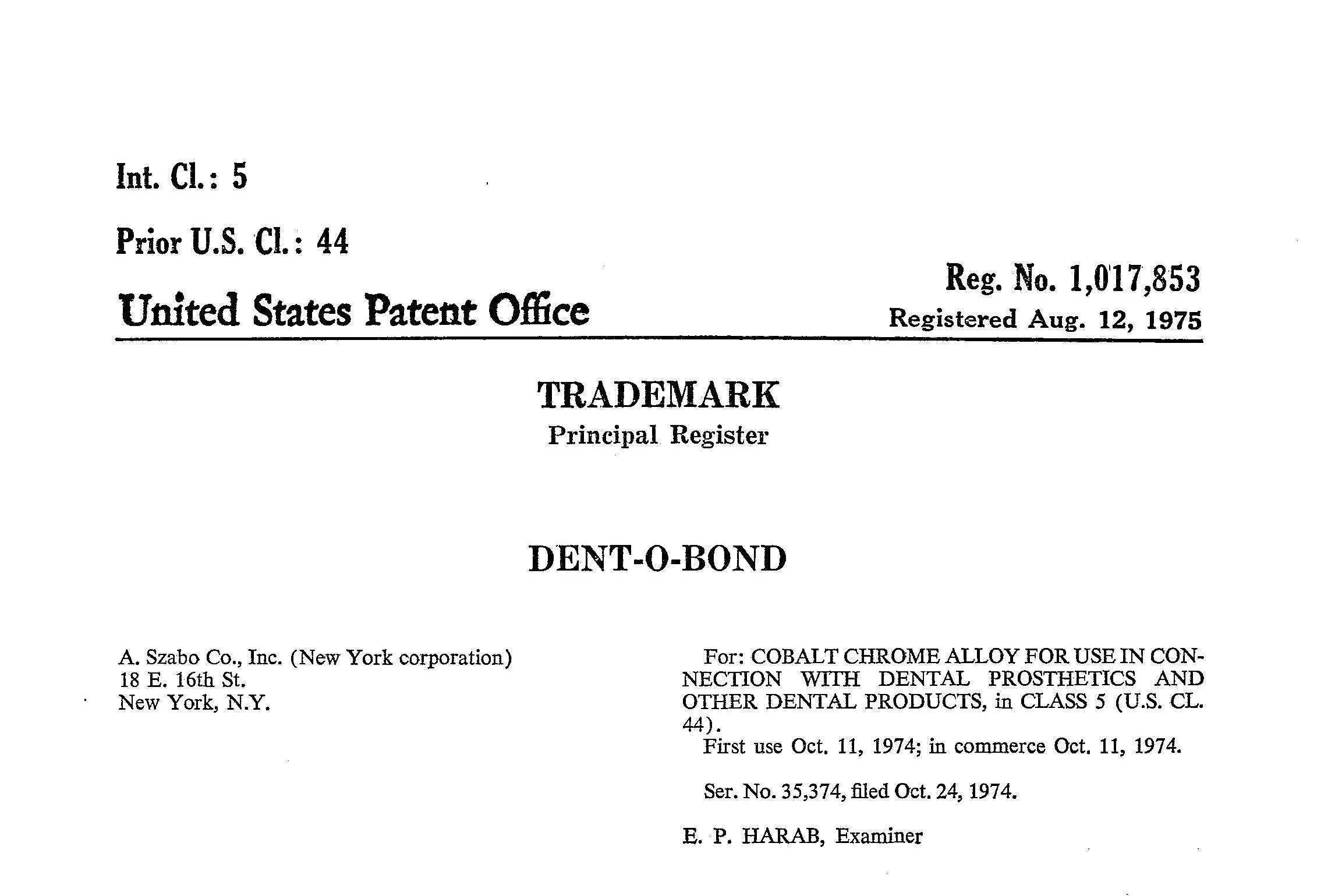 This company was operational at least till 1975 as they applied for another patent in 1975 titled DENT-O-BOND that's related to the use of Cobalt Chrome alloy in dental products.