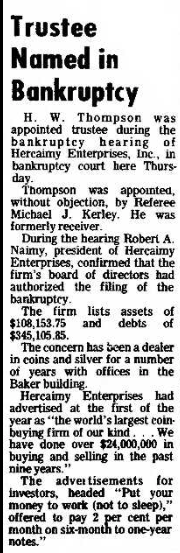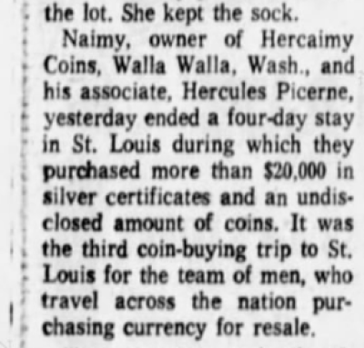 Bob Naimy and Herc Picerne ran Hercaimy Coin (which became Hercaimy Enterprises) mostly by traveling the country buying silver, gold and coins from people. Even after the company went bankrupt, Bob Naimy continued to travel the country using a different company name, Prestige Coins.