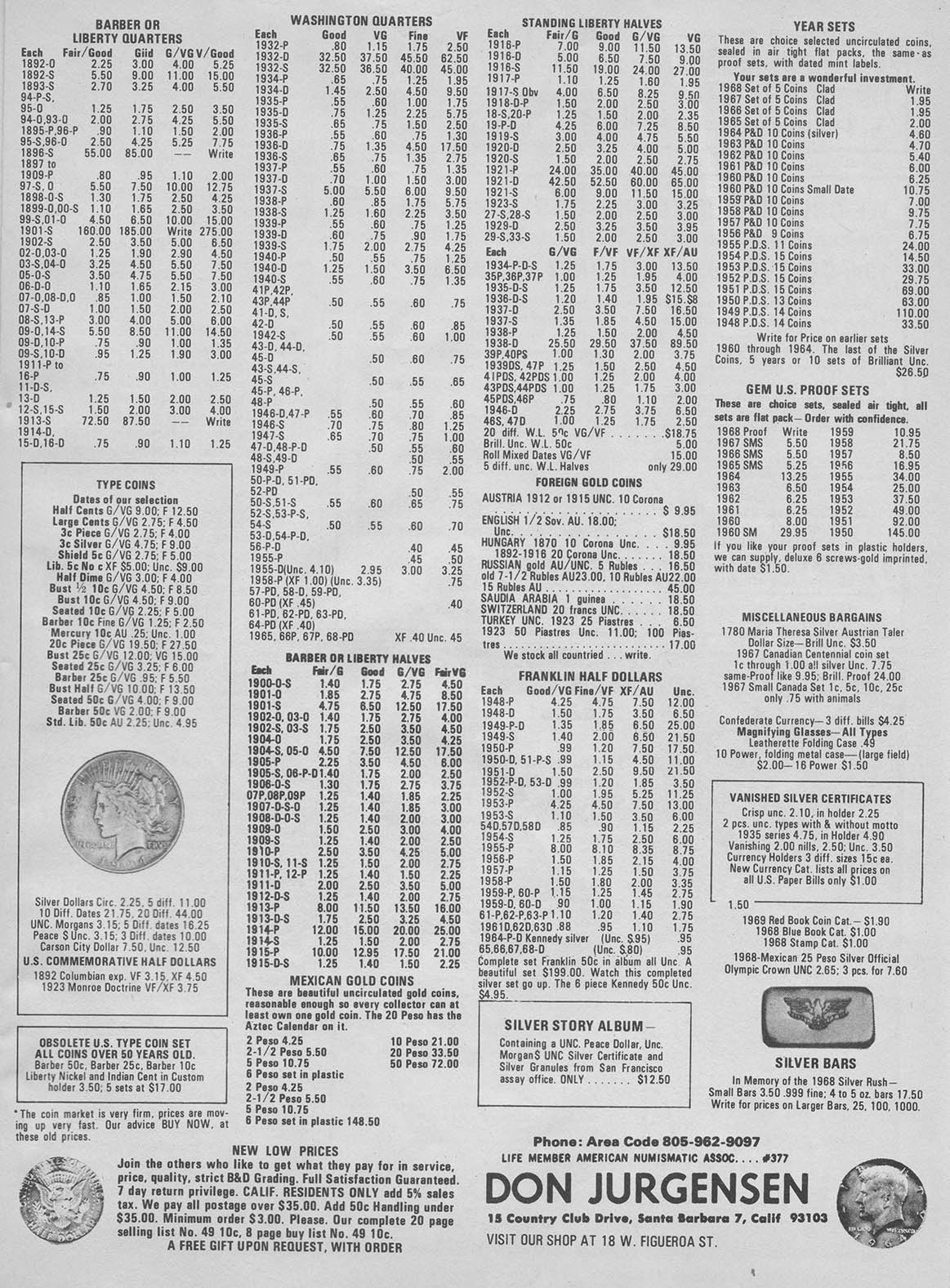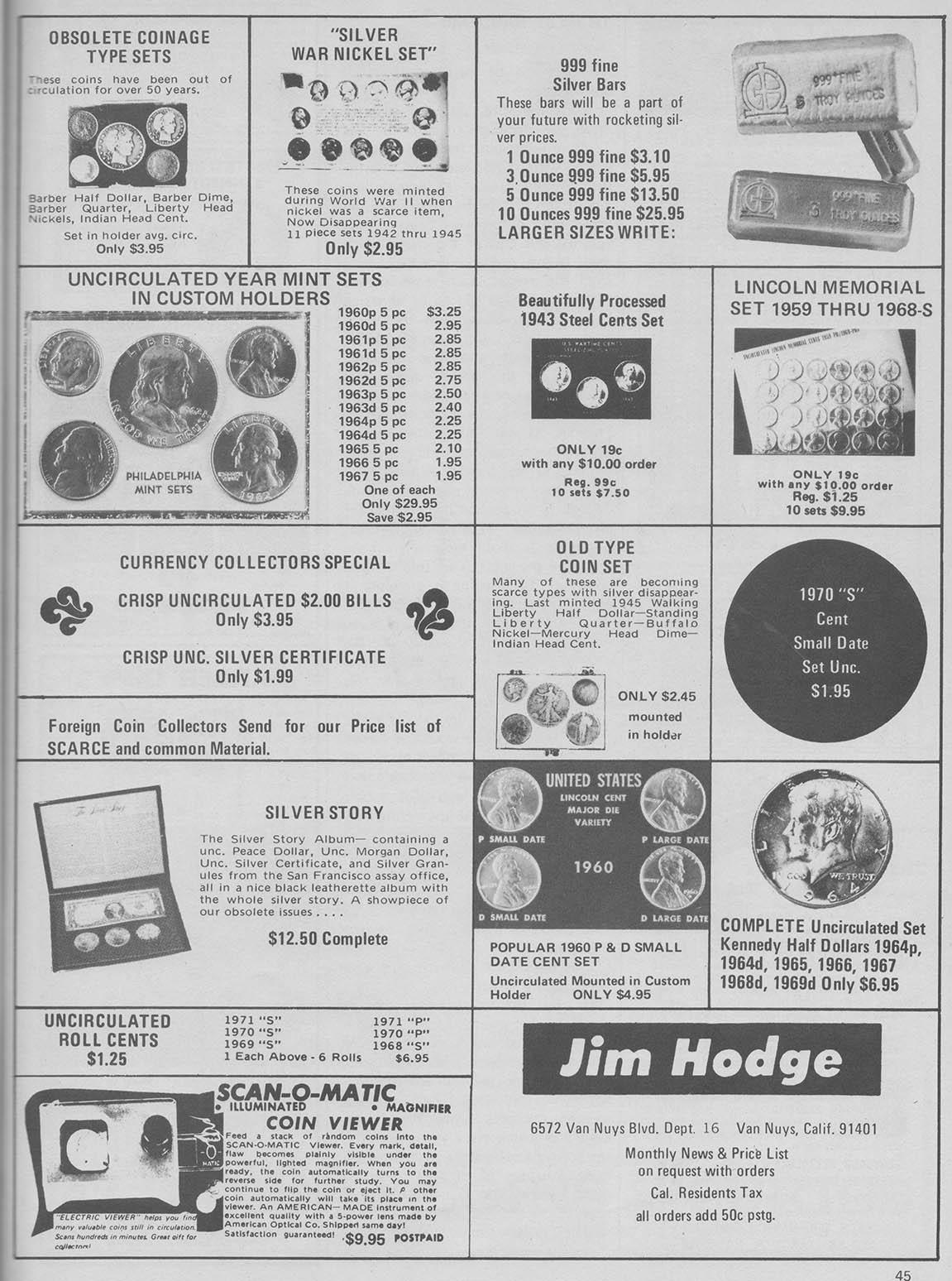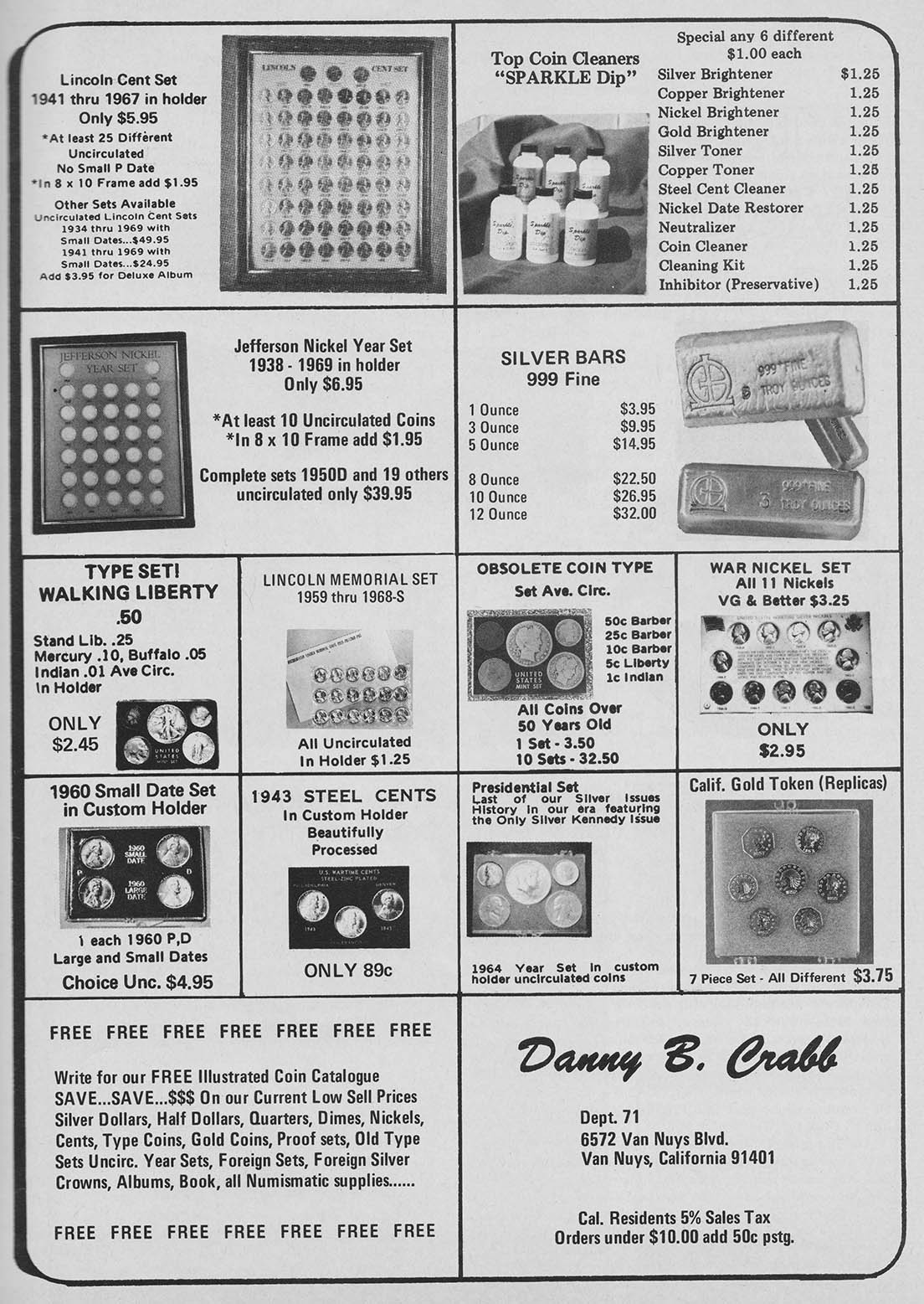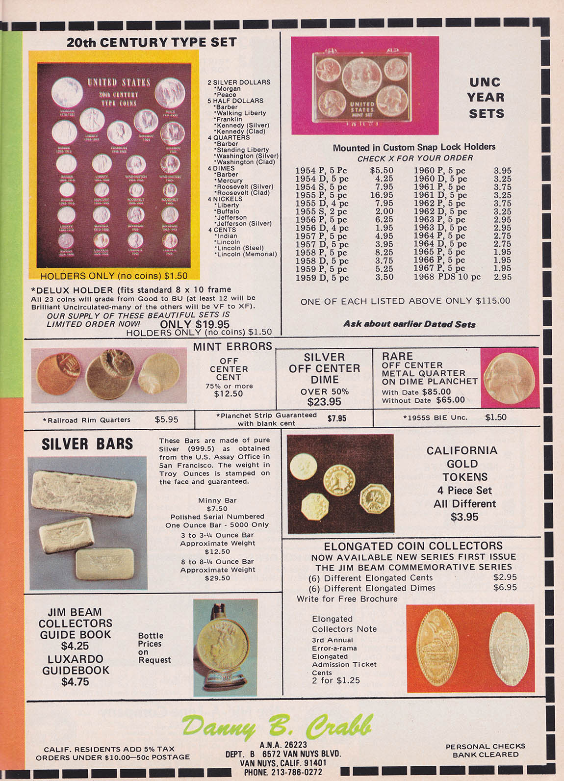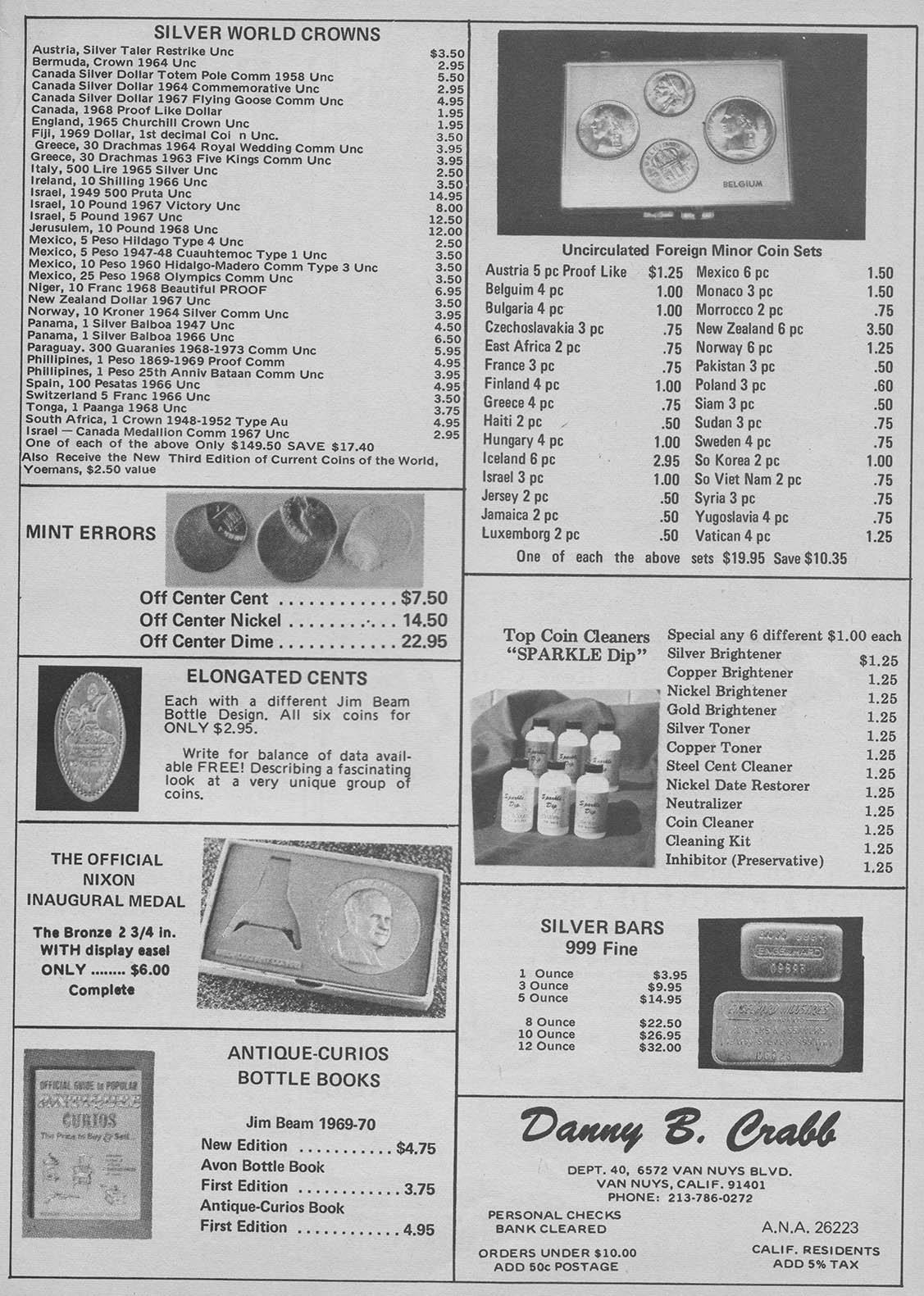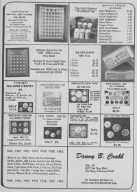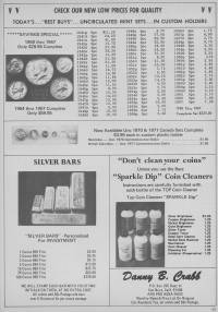 From my research, the first instance a poured bar appeared was October, 1967 in Coinage Magazine. All these other ads are from Coinage magazine which I have about 50 from 1967-1981 I have not been able to look at Coin World archives and only have four Coins magazines from this era with no ads showing poured bars. Initially, Danny B. Crabb was the main supplier of these bars.