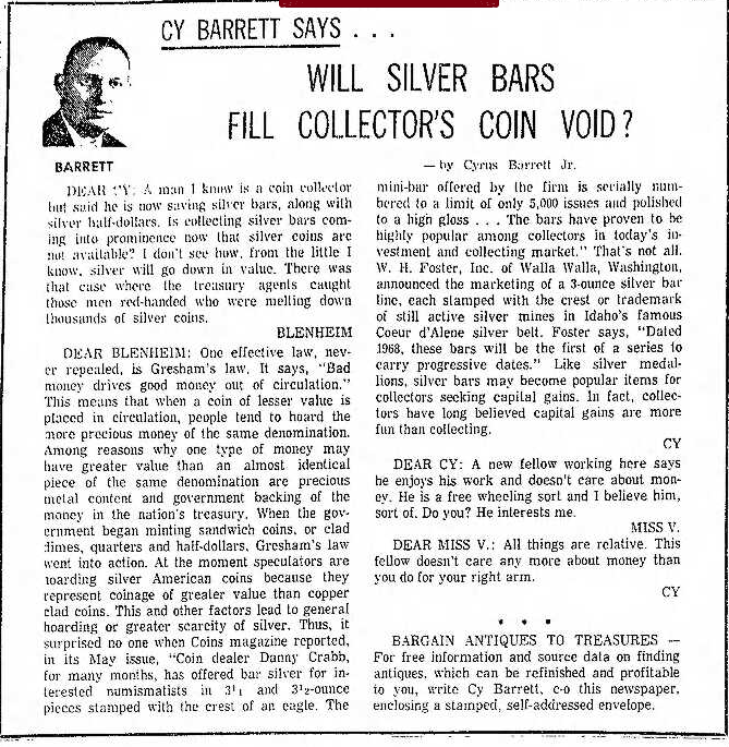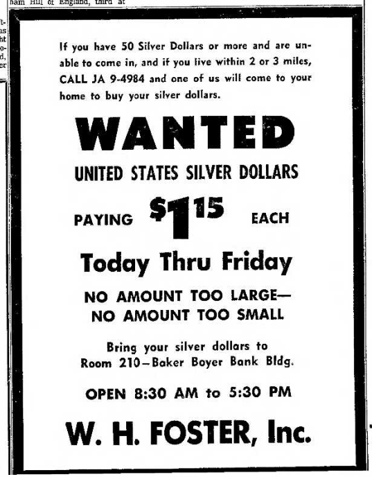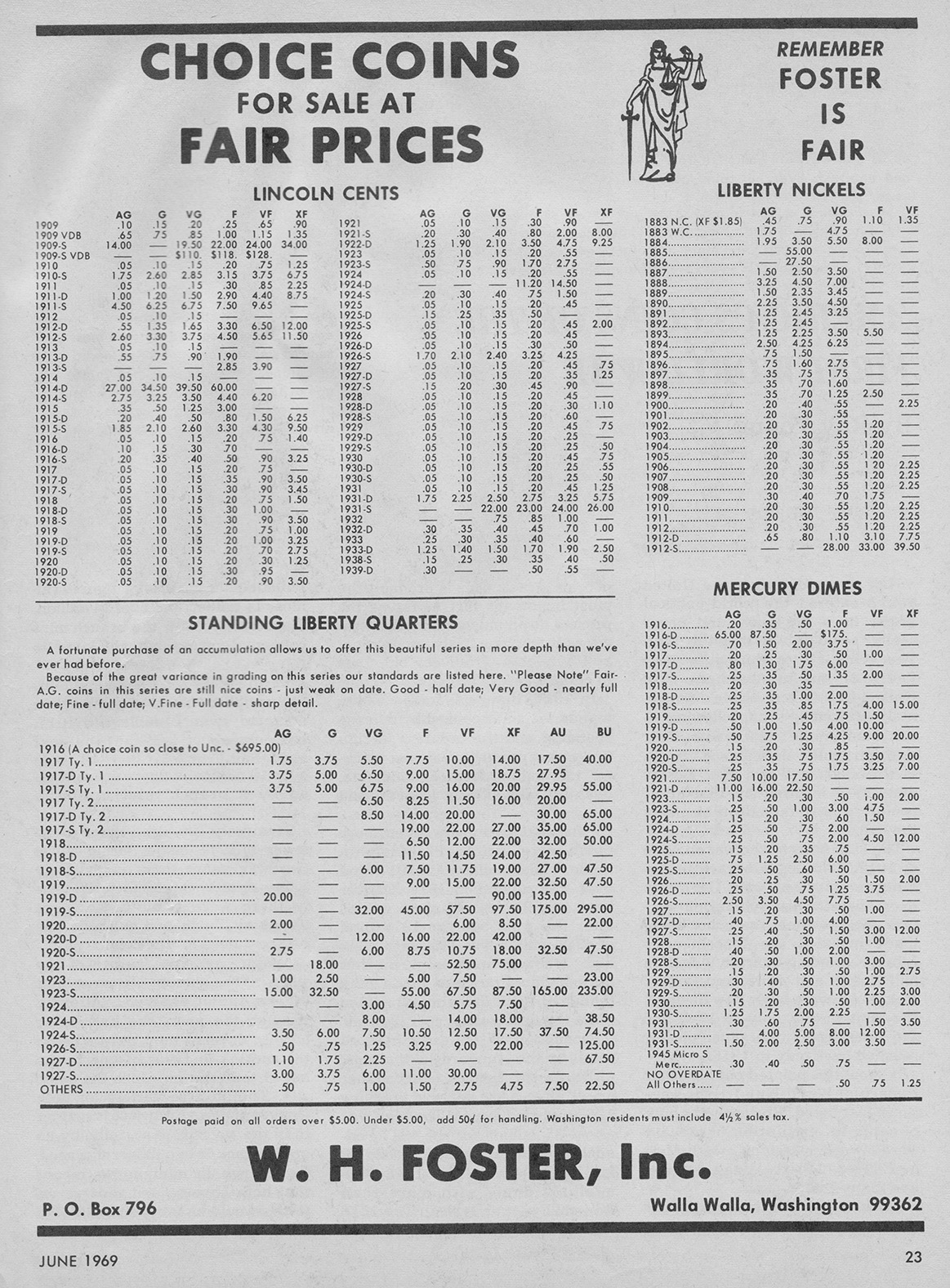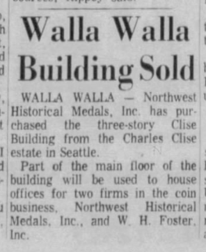 W. H. Foster Inc. was around from at least March 1963 and appears to have been run by Bob Naimy and Herc Picerne until 1970 when Hercaimy Enterprises went bankrupt. The company seems to be associated with Northwest Medals after that point. Unlike Hercaimy Enterprises, they did not travel the county buying up coins and bullion.