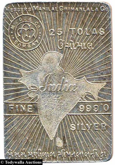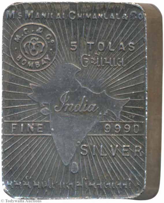 Here's a note from The United States National Museum: The Annual Report for the Year Ended June 30, 1963 showing the donation of a 5 Tola Manilal Chimanlal Silver piece made to the national collections.