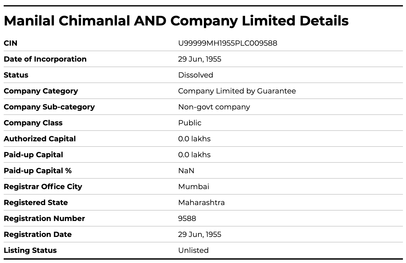 Company Information: Not much information is available on when exactly this company was established but there are a few sources stating that this company was publicly incorporated in 1955. Both Manilal and Chimanlal are popular last names in India so this business was probably started by people from both the Manilal and Chimanlal families.