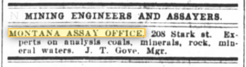 The Montana Assay Office in Portland, OR dates back to at least 1903, as evidenced in the ad below from the Oregon Daily Journal, Jan. 24, 1903: