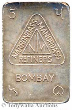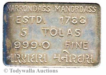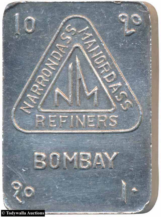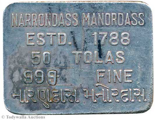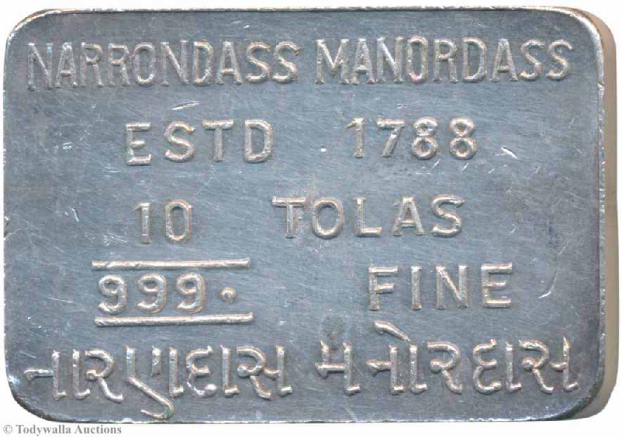 Narrondass Manordass is still one of the largest producer of silver bars in India and their modern bars include 5, 10, 50, 100, 200, 250, 500, 1000 grams bars