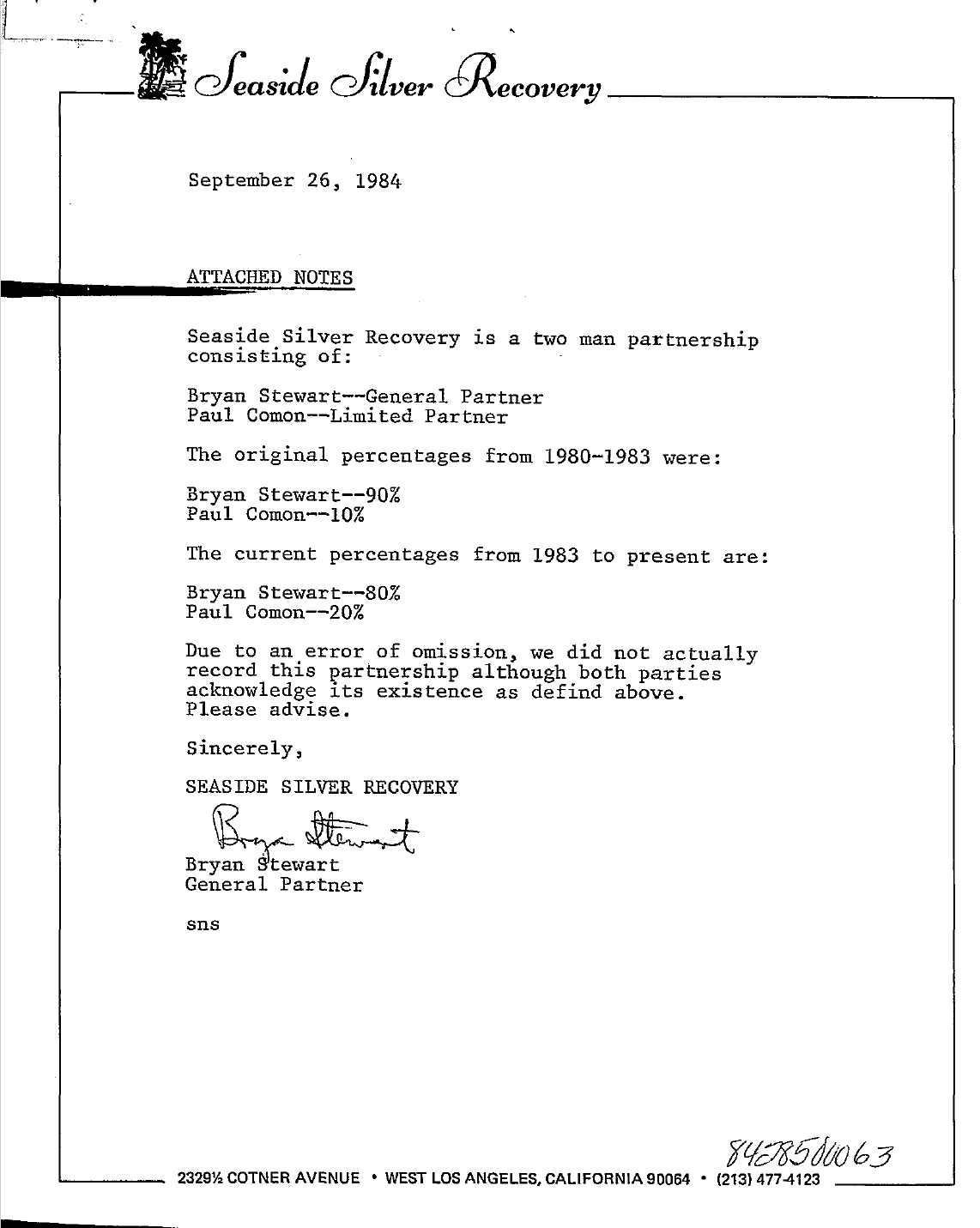 Company Information: Unofficially formed on January 1st, 1980 as a partnership between majority owner Bryan Stewart, and Paul Comon. Due to what they called an “error of omission”, they did not formally file until September 1984. The company was dissolved in September 1986.