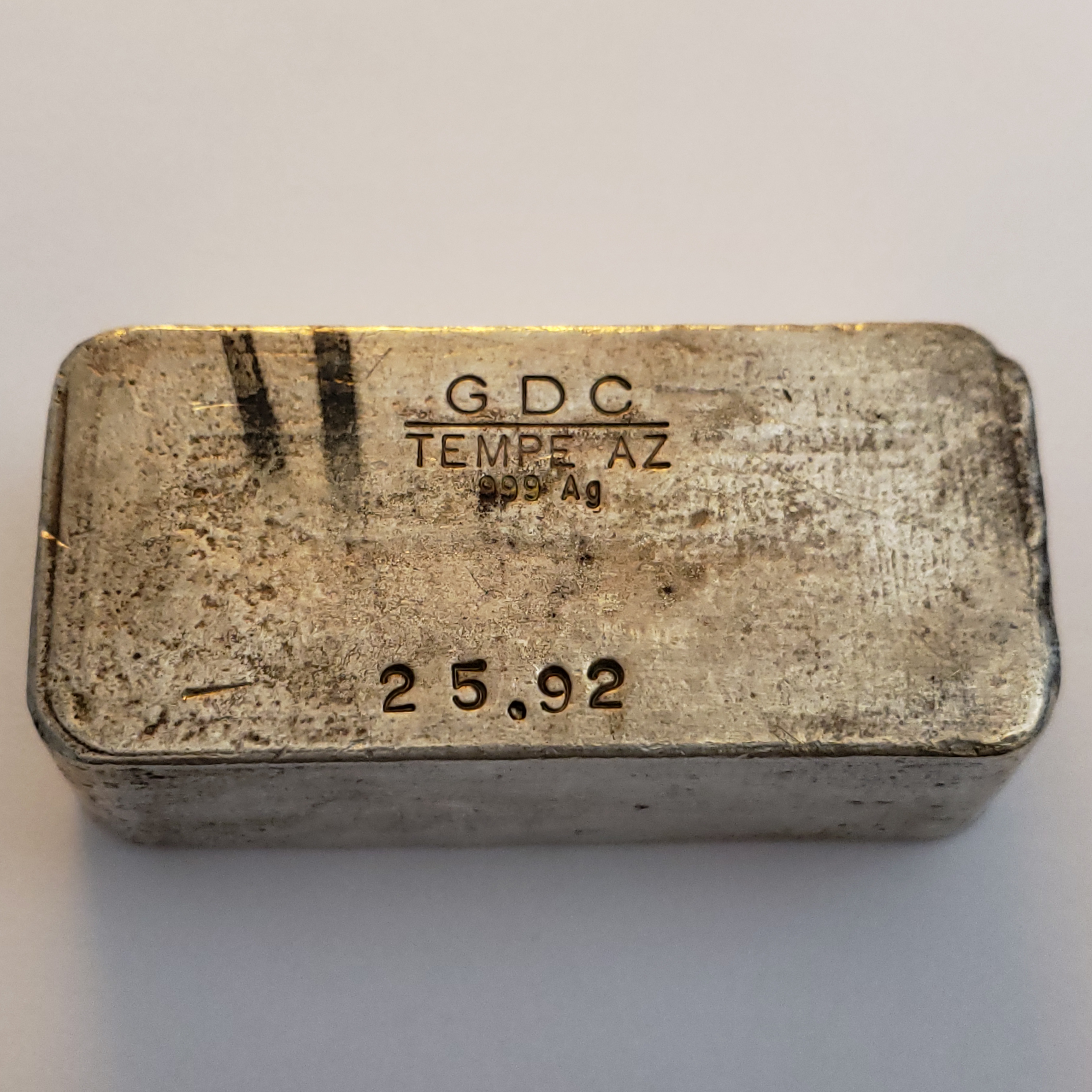 Company Information - Edited quote from a highly respected collector: Gila Development Company (GDC), established in 1916 out of Tempe Arizona, is known more widely for its copper ore mining, silver of course a byproduct of such. Long since disappeared, these 1970's ingots remain as a reminder of what was once a flourishing mining district, like so many others, that is no longer in operation. [End]