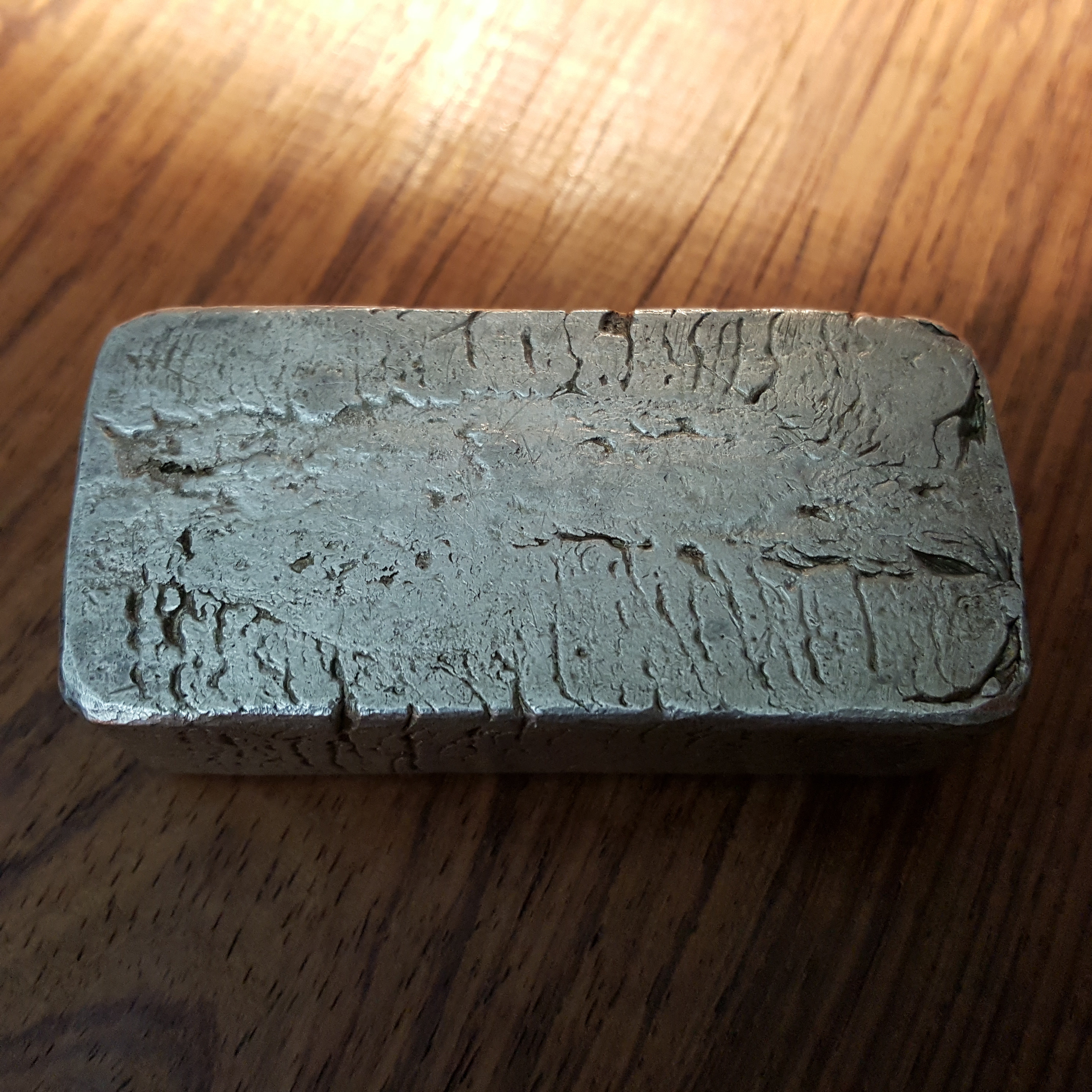 Known sizes: 1oz pressed, 2.35oz pressed, 5, 10, 25, 50, and 100oz-class poured (mostly odd weight)