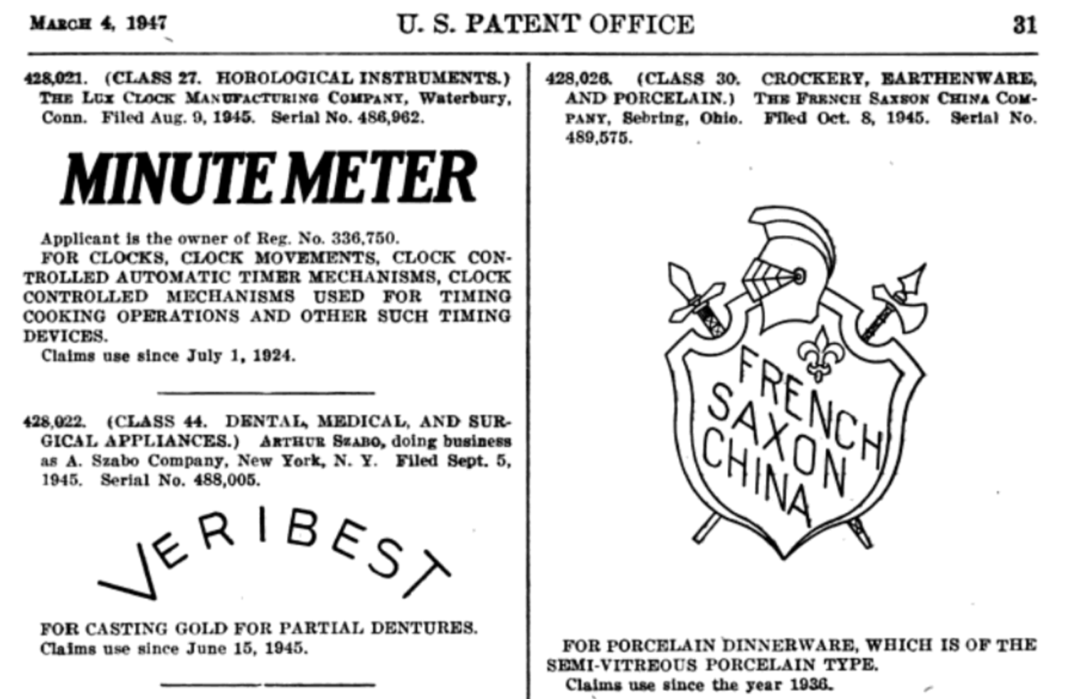 One of the products of Arthur Szabo Company, Veribest, was being used since June 15, 1945 filed for a trademark in September 5, 1945. Here's a listing (bottom left) from the Official Gazette of the United States Patent Office from March 1947 showing Veribest.