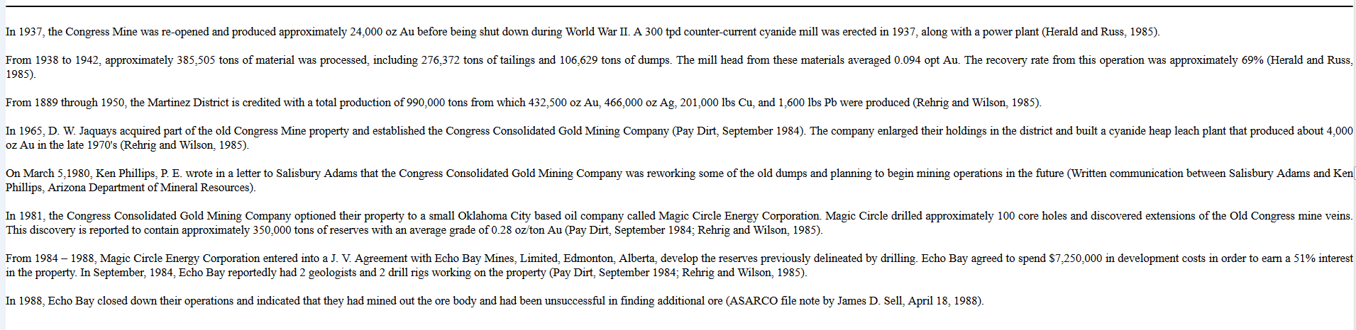 Recent history of re-working the Congress Mine (from SEC.gov archives):