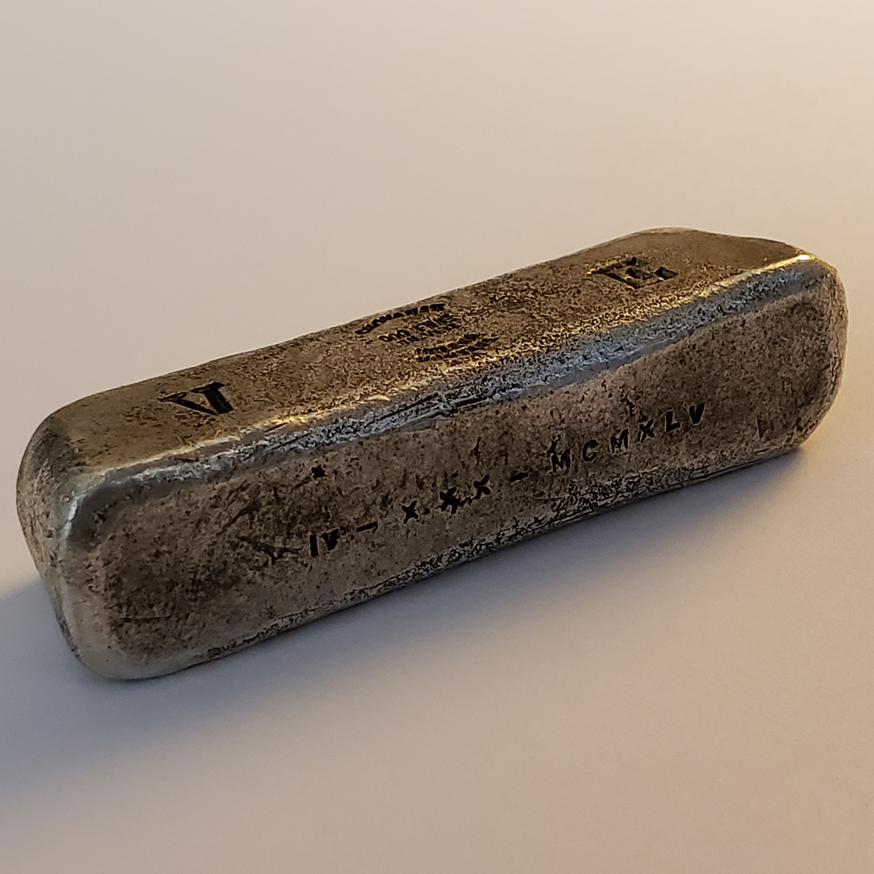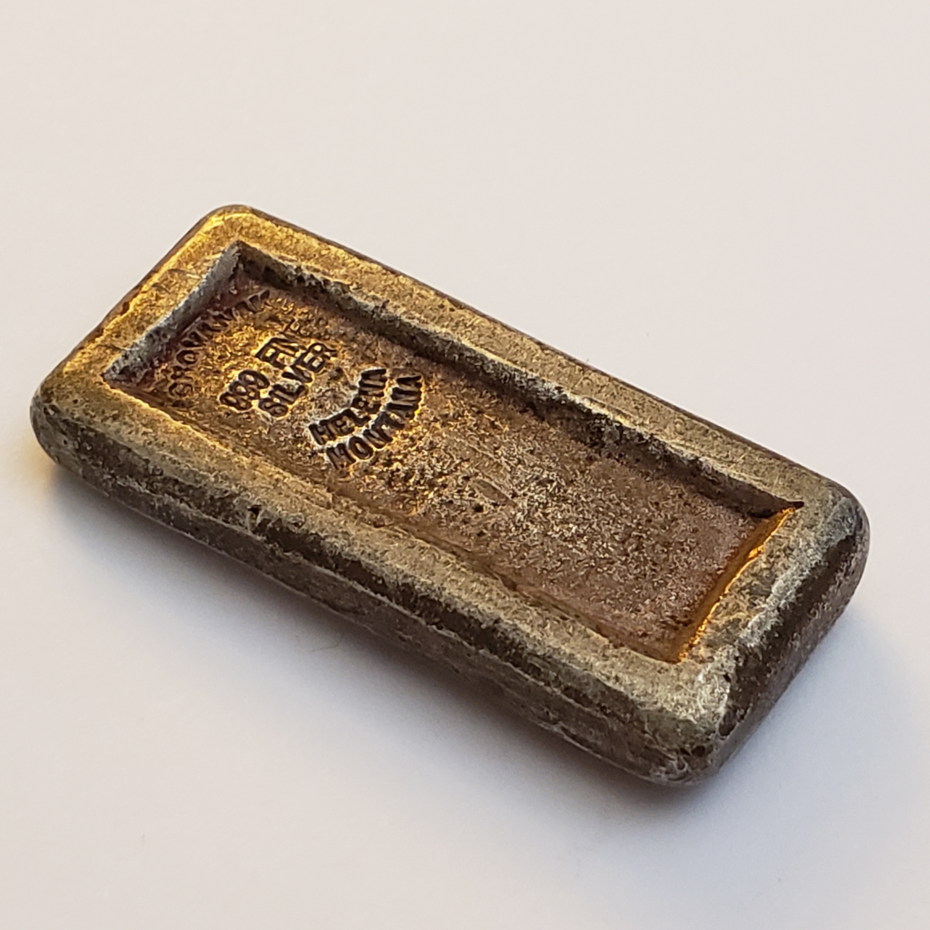 There were 3 brothers who did the mining and refining part time after WWII, so the story is that there are 3 separate cast forms of ingots from that era. In 1947, one brother started working for Westinghouse as a dental film tech, and began extracting silver from used film. So, at that point, there were two sources of silver for the ingots. The family sold their ingots, and also used them to barter for goods in town during hard times.