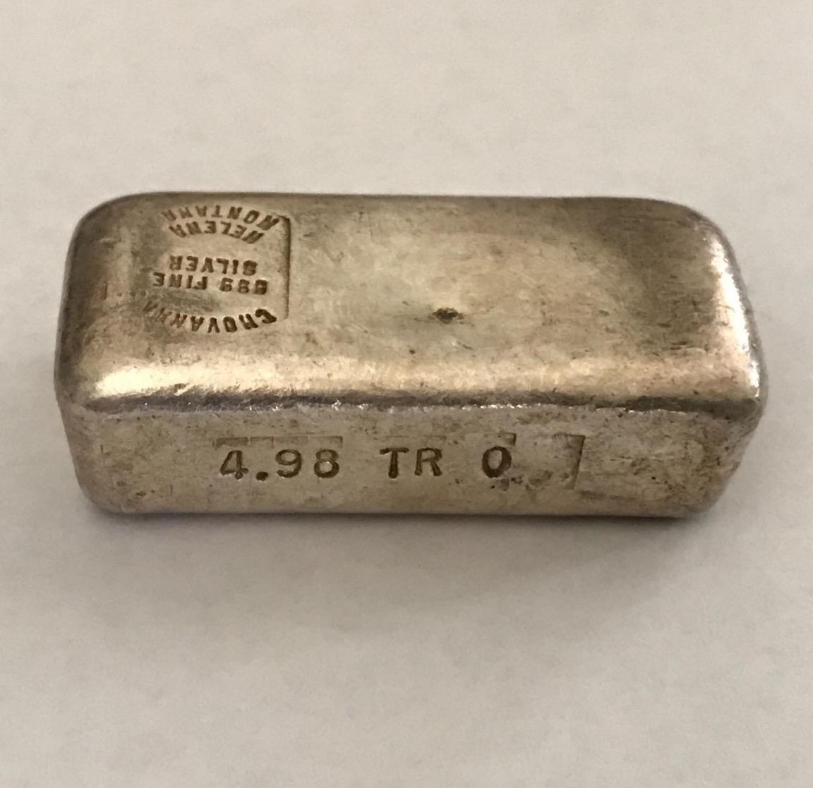 It appears that as the price of silver rose in the late 1970's, family members incorporated their small operation. Chovanak Corporation was formed on 5/16/1979, and the locals say that ingots from the 1960's through this era can be recognized by the unique “TR O” weight designation, as well as other slightly differing fonts. The local knowledge and research says that some of the ingots with the “OZ” weight designation date as far back as 1905-1916 or before, but more study should be done with an attempt at classification and time periods.