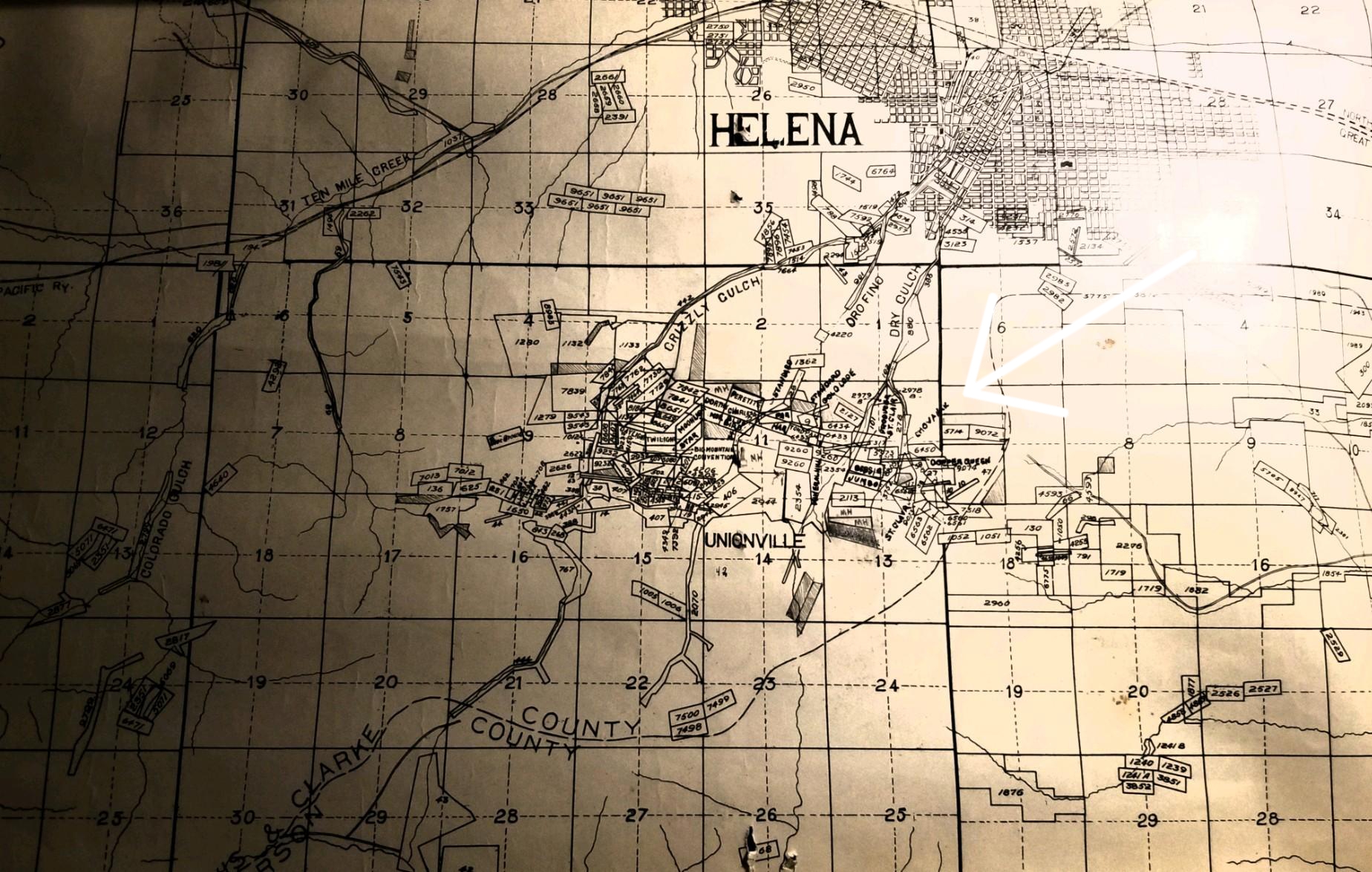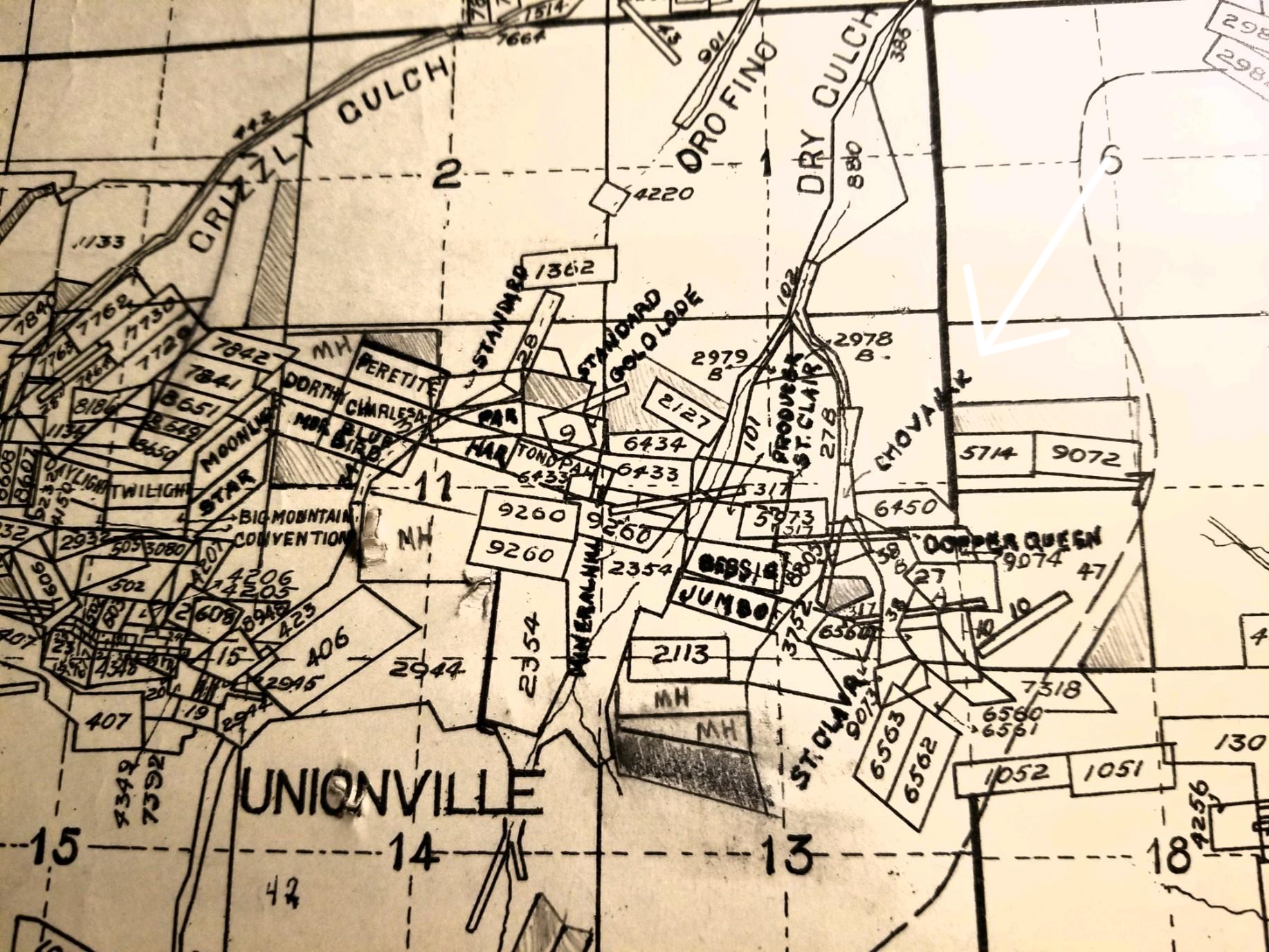 1916 Tax map showing Chovanak claim (white arrow):