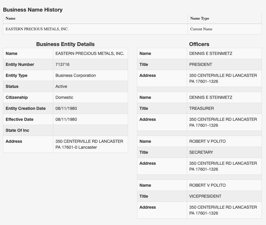 Company Name: Eastern Precious Metals