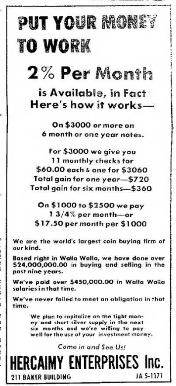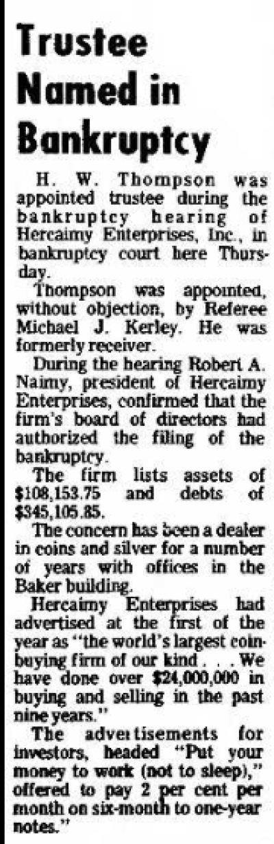 Bob Naimy and Herc Picerne ran Hercaimy Coin (which became Hercaimy Enterprises) mostly by traveling the country buying silver, gold and coins from people. Even after the company went bankrupt, Bob Naimy continued to travel the country using a different company name, Prestige Coins.