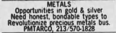 Newspaper ad from Los Angeles Times. August 15th, 1975