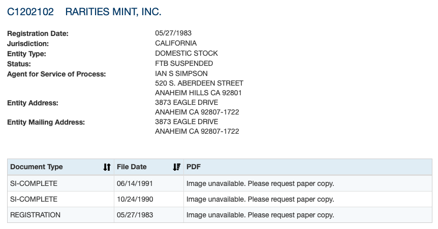 Company Information: According to the California corporation search website, Rarities Mint was started in 1983 in Ahaheim, California. They made a variety of silver rounds including a very popular series for Disney as well as several stamped and poured bar varieties.